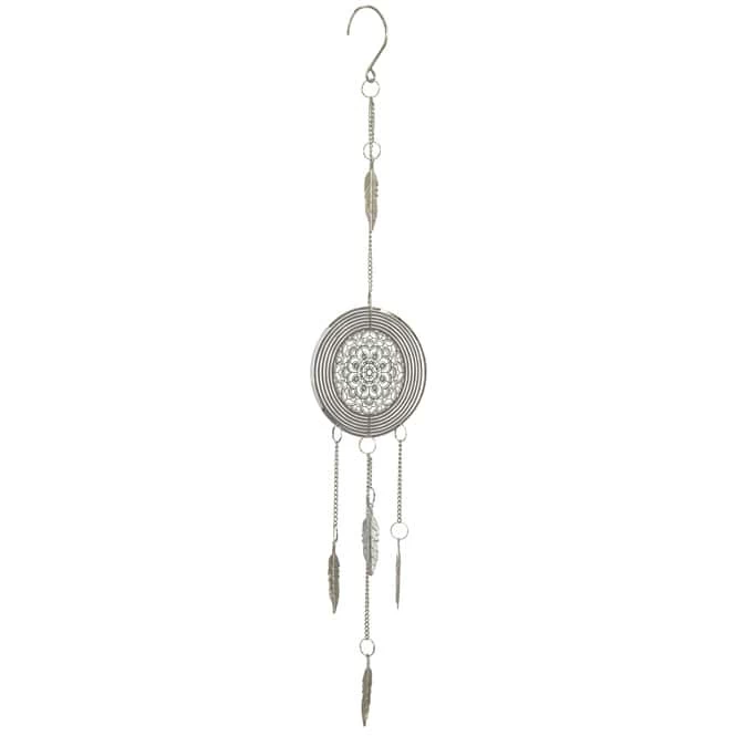Sie sind die Kultobjekte der Indianer und haben sich unlängst den Weg in die westliche Welt, allem voran die Mode und die Dekoration gebahnt: Traumfänger. Wenn Sie auf der Suche nach einer gelungenen Neuinterpretation ebendieser sind, mit der Sie die vier Wände im Nu in eine behagliche Wohlfühloase verwandeln können, werden Sie den niedlichen Dekohänger lieben! Dieser kommt als liebevoll gestalteter Traumfänger samt baumelnder Federn daher und ist ganz sicher die modernste Interpretation des klassischen Ethnolooks. Er besteht aus Metall, misst 54 x 10 cm und lässt sich mithilfe des Hakens kinderleicht an der gewünschten Stelle anbringen. Ganz gleich, ob im Wohn-, Ess- oder Schalfzimmer – mit dem stylischen Deko-Traumfänger bleiben fortan keinerlei Wünsche mehr offen.