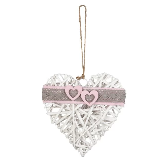 Dekohänger – Weidenherz – weiß/grau/rosa – ca. 26 x 26 cm