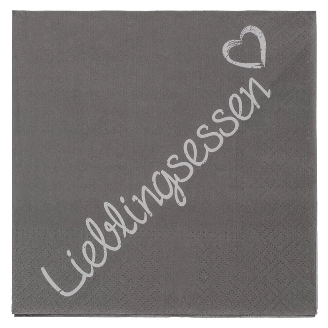 20 Servietten – Lieblingsessen – ca. 33 x 33 cm – grau