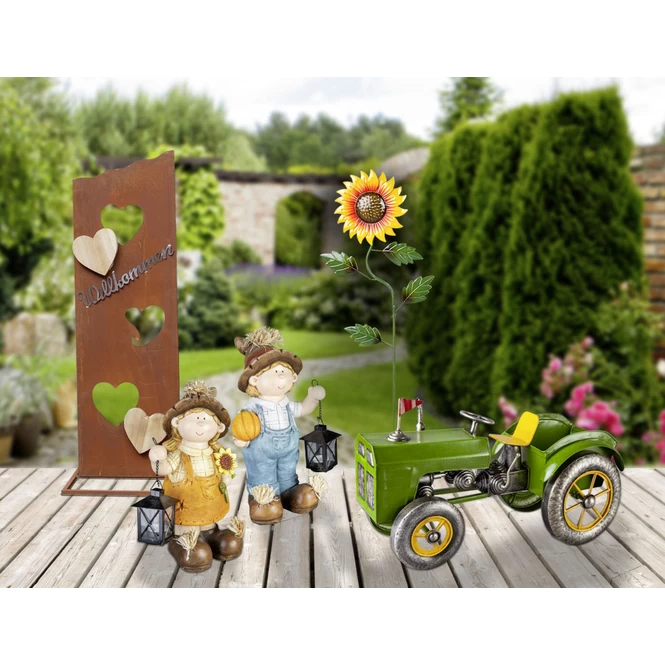 Sie sind auf der Suche nach einem fröhlichen Übertopf, der Pflanzen, Blumen und sonstige Gewächse zu einem echten Augenschmaus macht? Dann liegen Sie hiermit goldrichtig! Das hinreißende Pflanzgefäß kommt als Traktor gestaltet daher und ist somit genau das Richtige, um in Haus und Hof dekorative Akzente zu setzen. Es besteht aus Metall, misst 45,5 x 21,5 x 26 cm und ist aufgrund der detailreichen Gestaltung der absolute Augenschmaus. In Kombination mit zarten Blümchen (nicht im Lieferumfang enthalten) taucht der Pflanztraktor Ihr Zuhause in Sekundenschnelle in ein wohliges Ambiente, von welchem Sie und Ihre Lieben in den warmen Monaten garantiert nicht genug bekommen. Ganz gleich, ob im Inneren der vier Wände, auf Balkon oder Terrasse – mit dem niedlichen Blumentopf sind Ihrer Fantasie keinerlei Grenzen gesetzt. Also ran an Blumen, Erde und Co. und munter drauflos gärtnern!