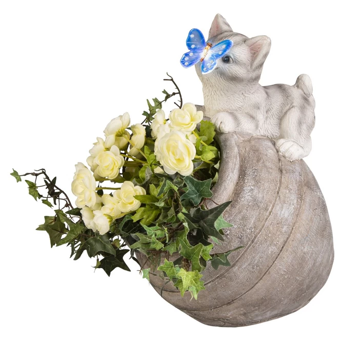 Pflanztopf – Krug mit Solar LED – aus Magnesia – ca. 30 x 25,5 x 41 cm