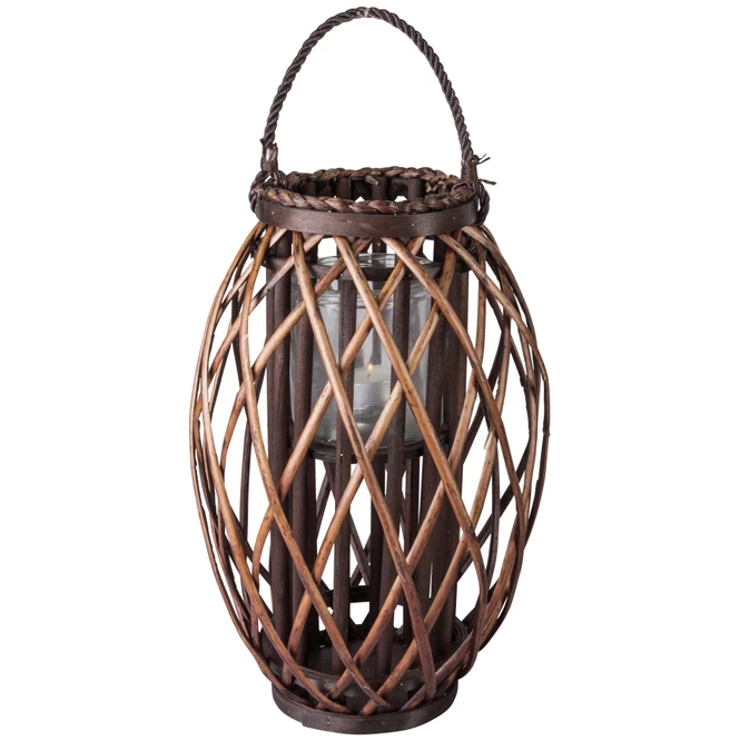 Windlicht – mit brauner Weide ummantelt – ca. 17 x 41 cm
